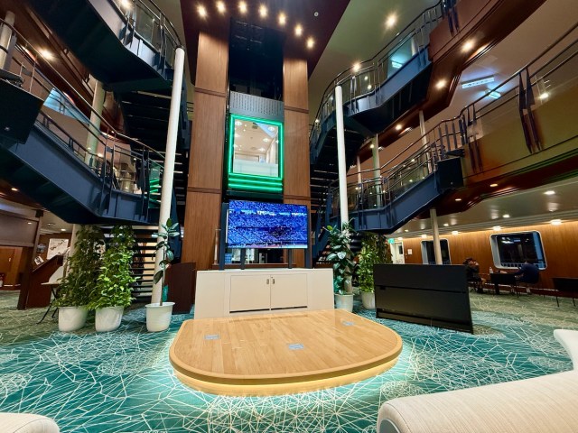 乗船するや否や「ここカジノですか?」と言わんばかりの超豪華エントランスホールが登場。スゲエエエエエ! 吹き抜けの超開放的なセレブリティ空間。なんならここで21時間過ごしてもいいレベル。