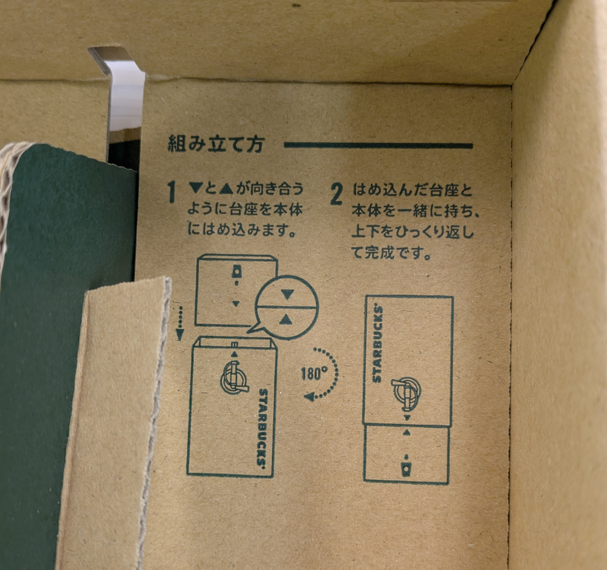 正解はこうでした。蛇口が上はおかしいもんな。この時、気づいていなかったけど、実はダンボールの下にハメる台もセットになってます。