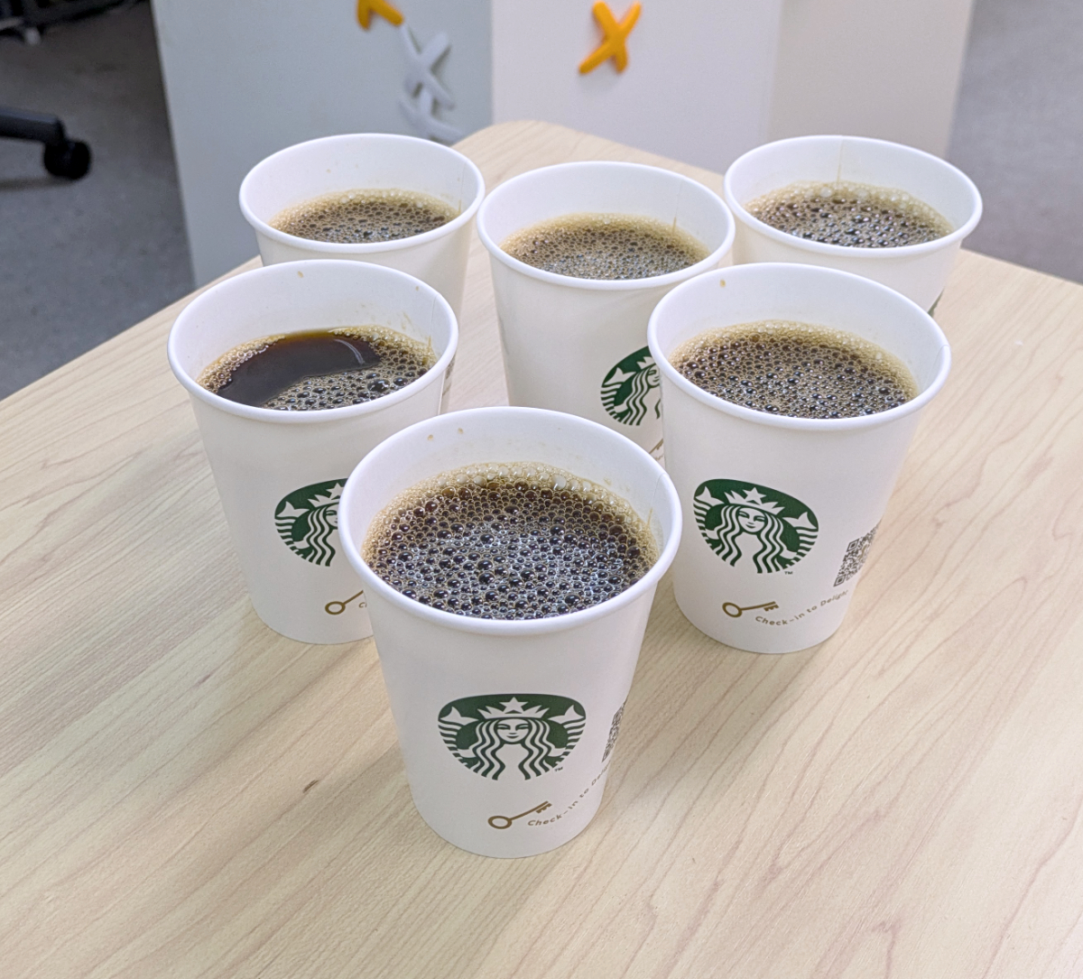 ヨッシ、それ頼も! 12杯(ショートサイズ)も飲めるらしい。ここはひとつ、年長者としてみんなにコーヒーを振舞ってやるか! と思い注文した結果、詰めが甘くて社内が微妙な空気になった……。