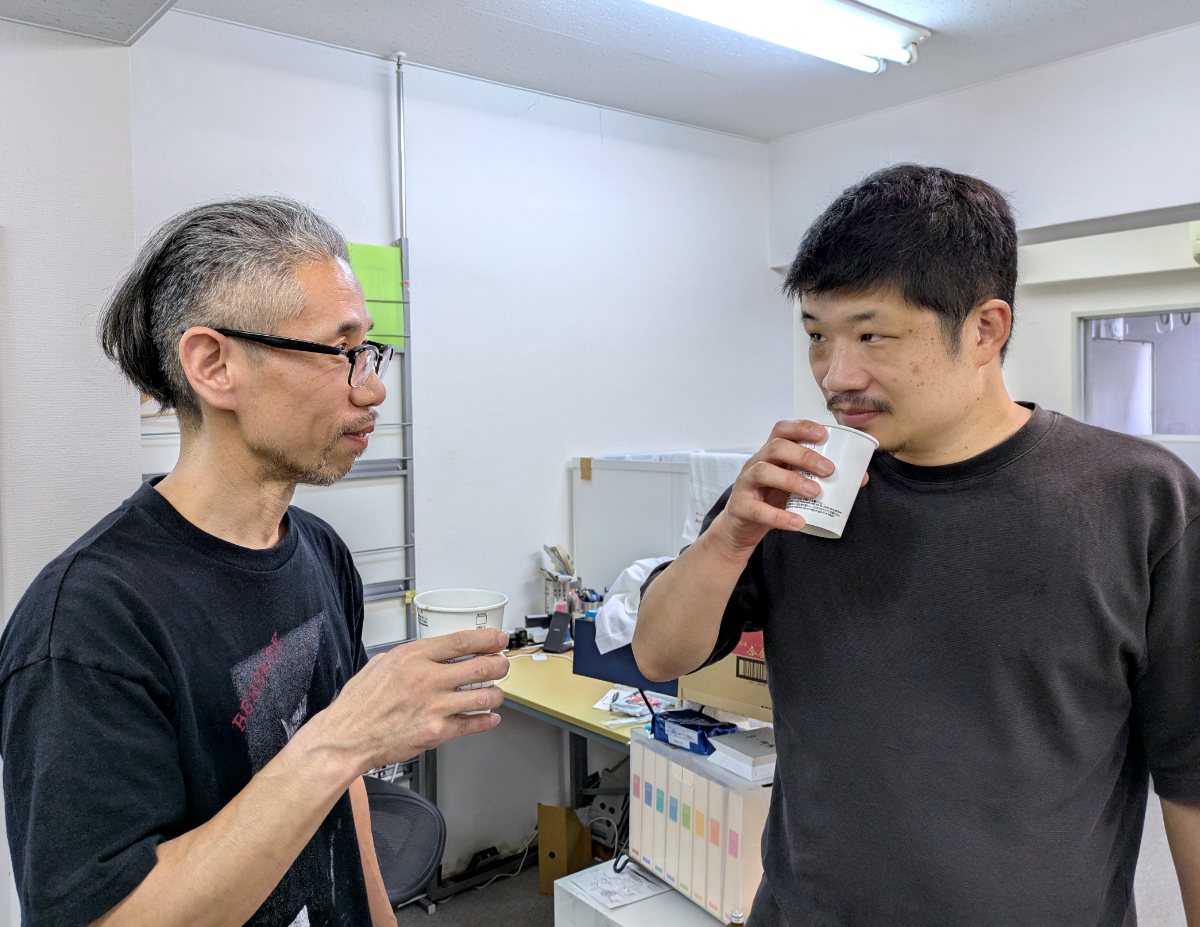 今日は小人数だがみんなでがんばろうな~! 美味しいコーヒー飲んで、張り切って記事書くぞ~~!!