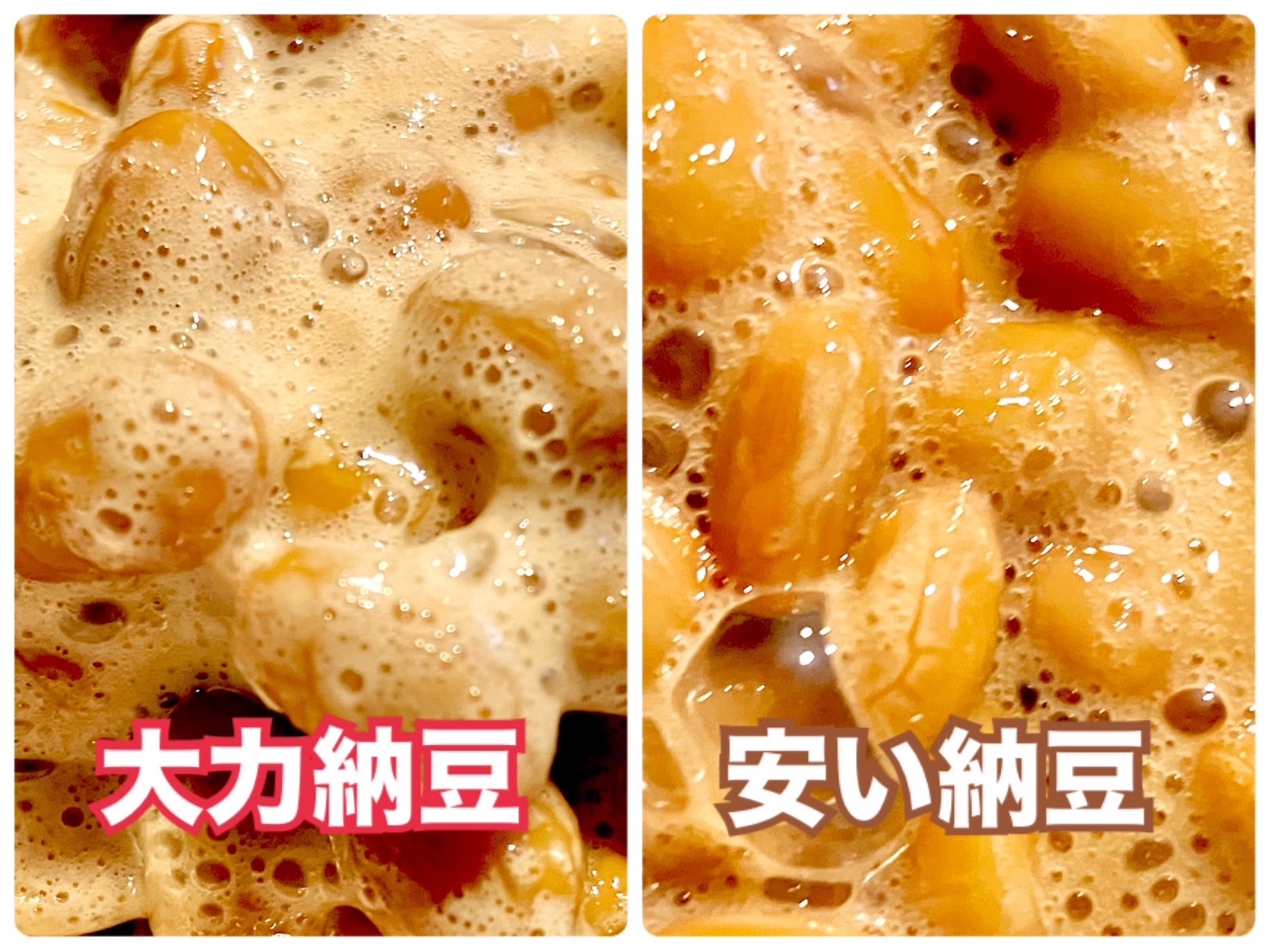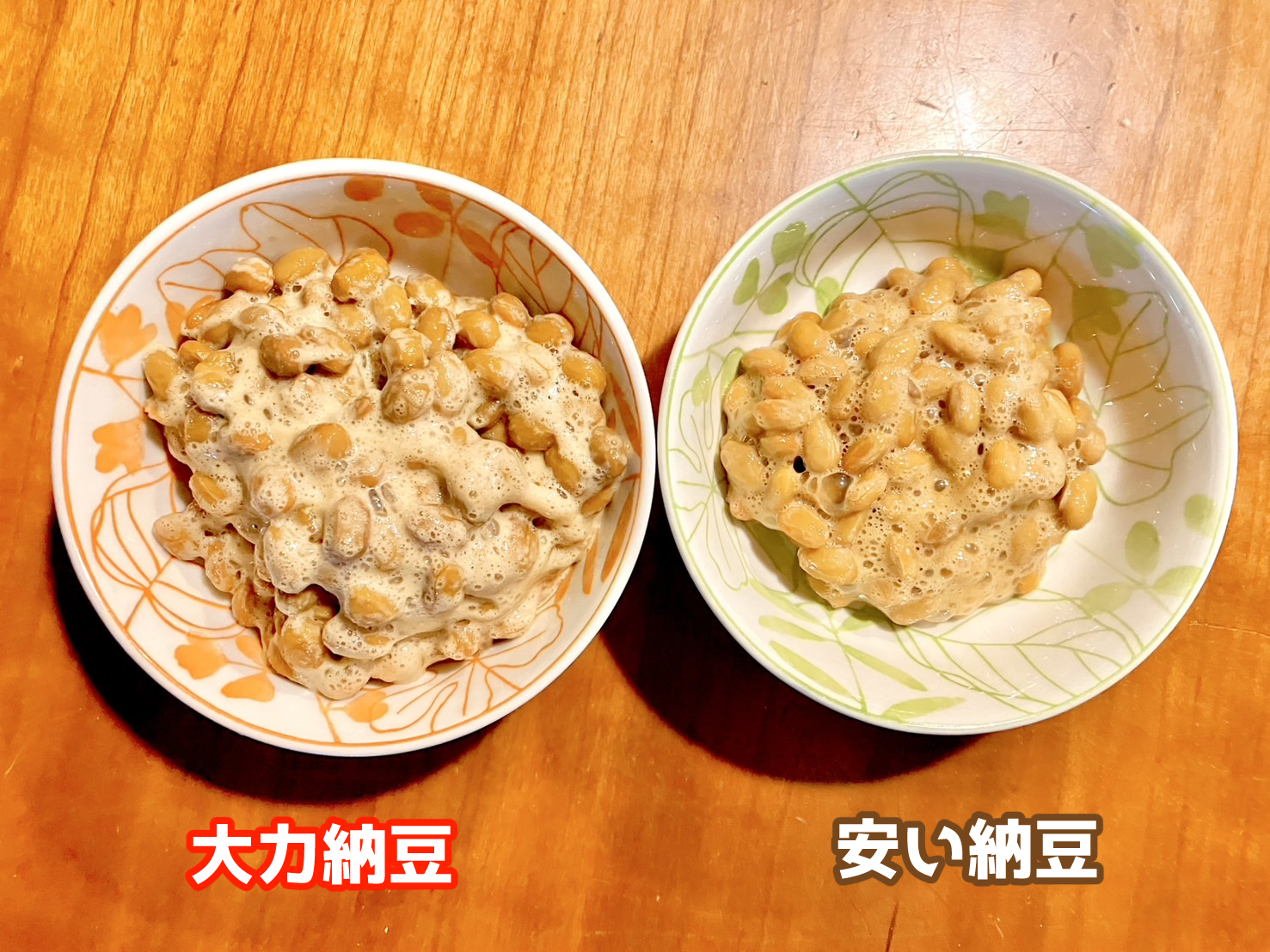 たれの味が強めだった安い納豆と比べて、大力納豆の味は納豆そのものの香りが強めで濃厚。
