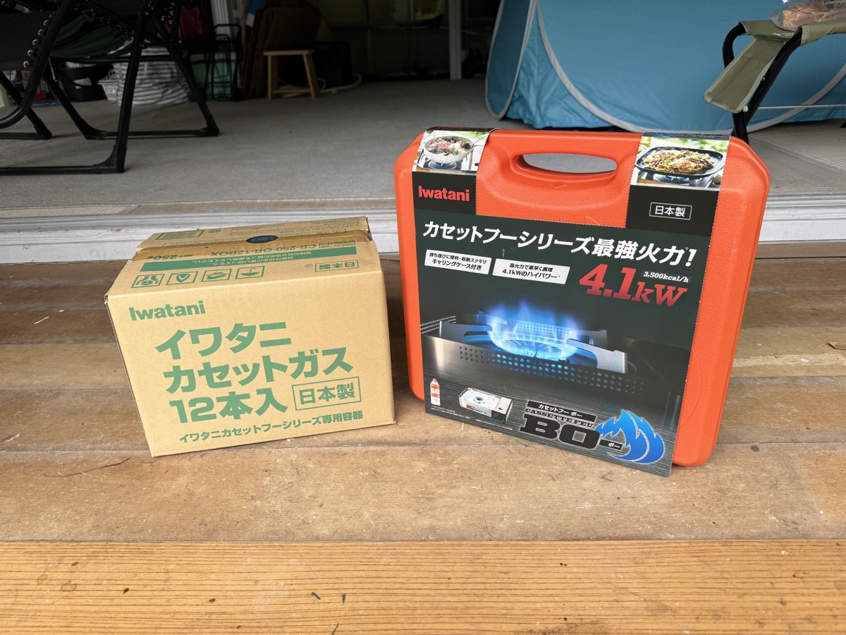 参考リンク:Amazon「イワタニ Iwatani 岩谷 カセットフー BO- ケース付 カセットこんろ 防災 日本製 CB-AH-41N」、「岩谷産業(Iwatani Sangyo)イワタニ カセットガス 専用ボックス入り 12本組 CB-250-OR-12BOX」