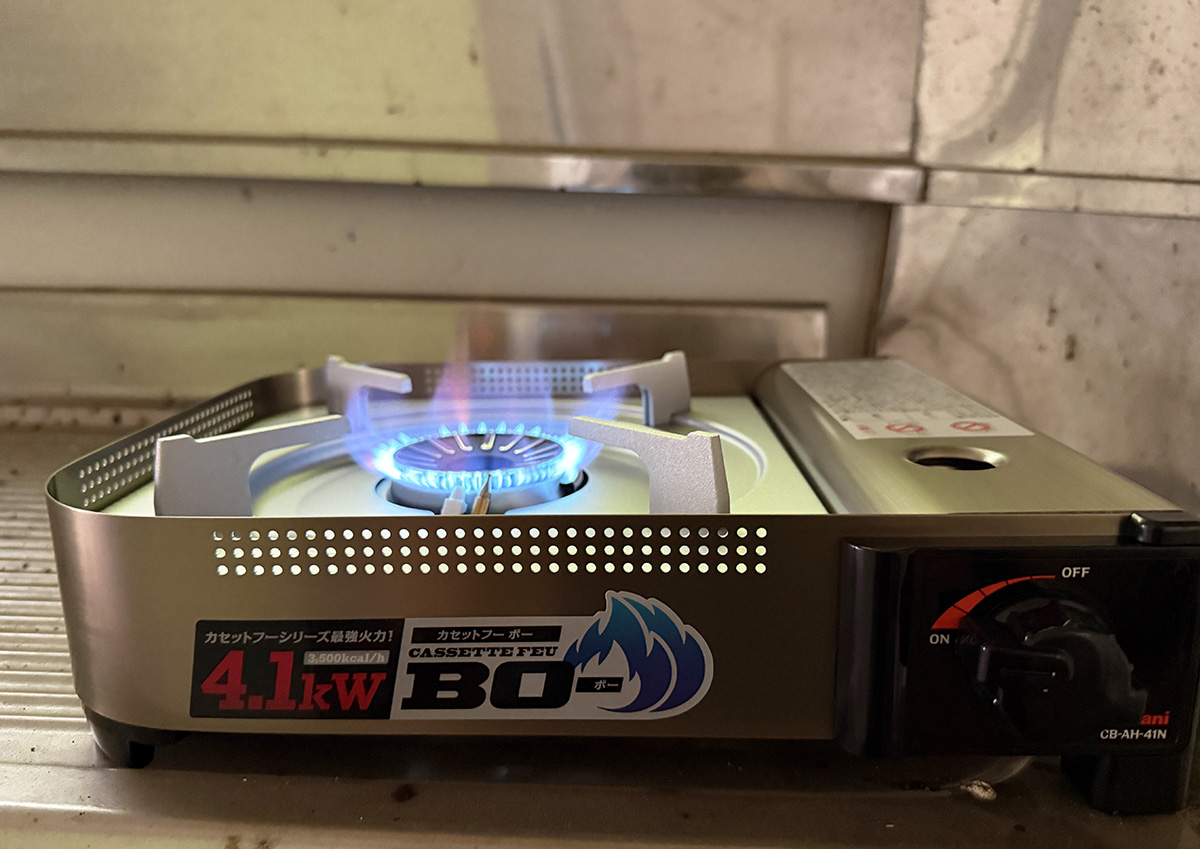 そして今回のために用意したのが、一般的なカセットコンロよりも火力が高いハイカロリーなカセットコンロ「イワタニ カセットフーBO」である。