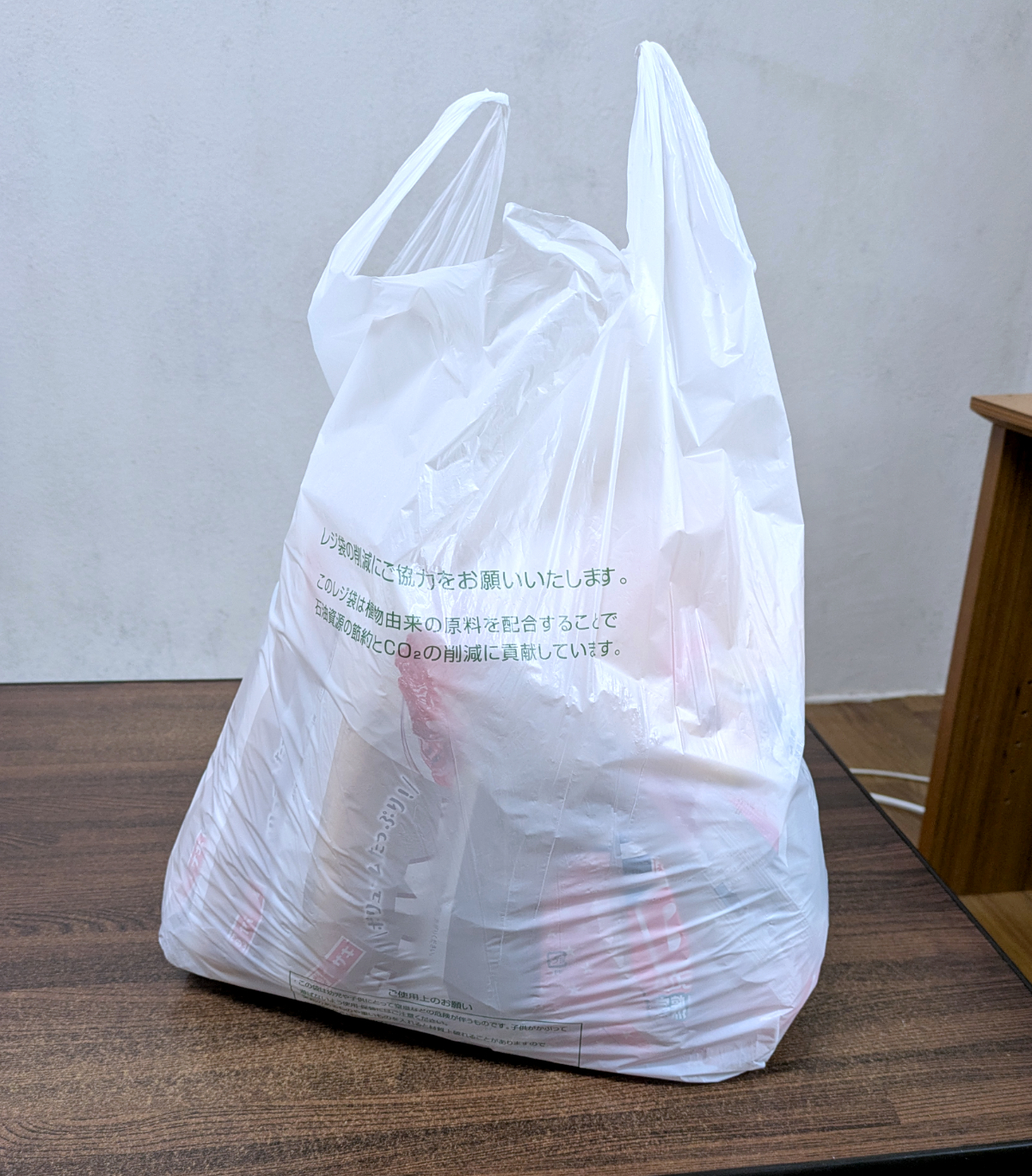 このあと別途2カ所を回って、購入から約4時間を経て帰宅。その間、ずっとビニール袋をぶら下げて歩いていたので、持ち手の部分が伸びきってしまった。結構重かった……。