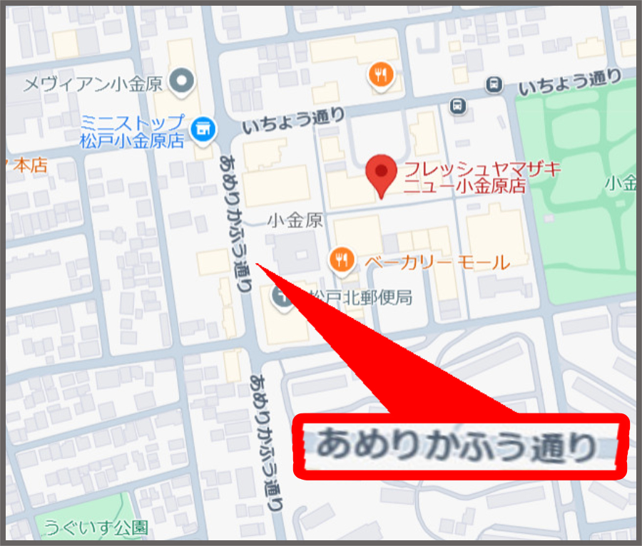バスの時間が合わなかったのもあるのだが、気になる通りの名前を目にしてしまったために、歩く決断をしたというのもある。その通りは「あめりかふう通り」。アメリカ風!?