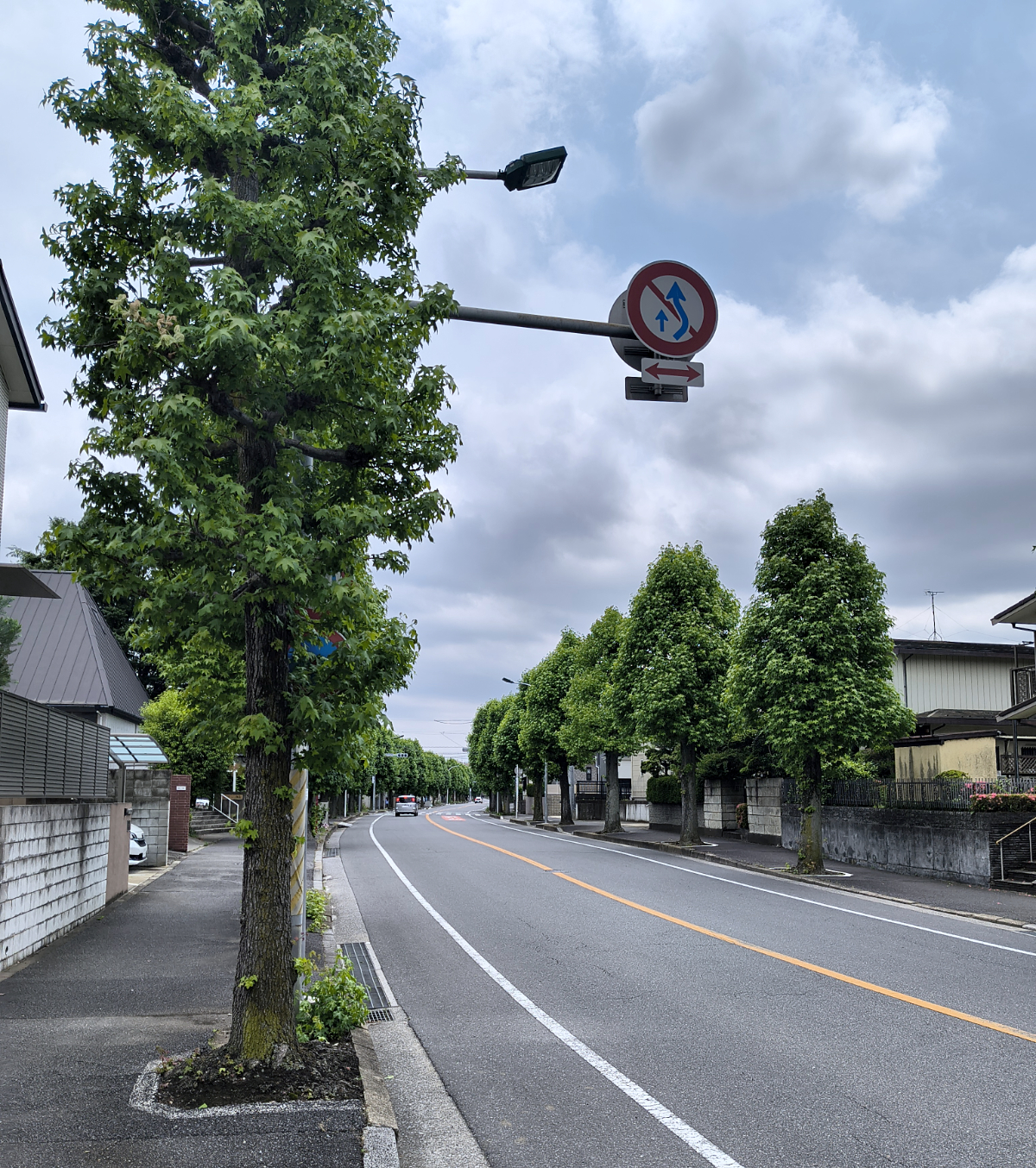 しかし、通りを歩いてみたものの、アメリカンな風は吹いていない。むしろ、日本らしい郊外の通りの景色が続いているばかりである。