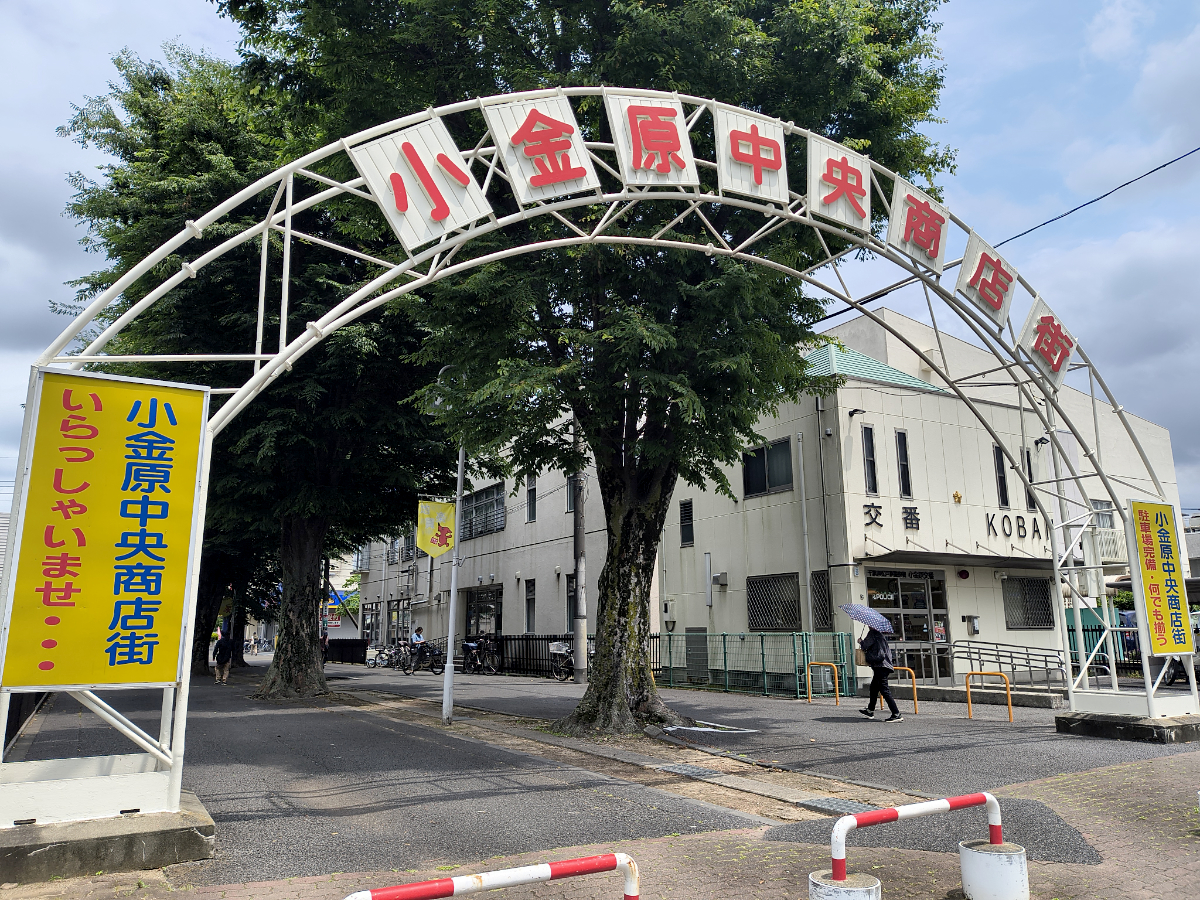 さて、アメリカ楓の下をトボトボ歩いていたら、目的地周辺に到着~。小金原中央商店街だ。