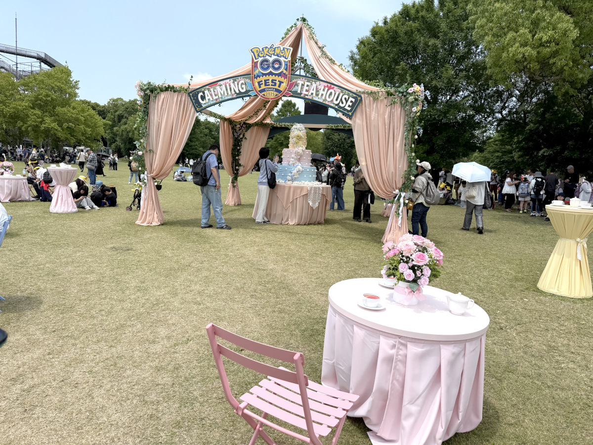 ──あ、確かに。憩い茶屋のオブジェも、実際にテーブルが並べられていて座れるようになってました。