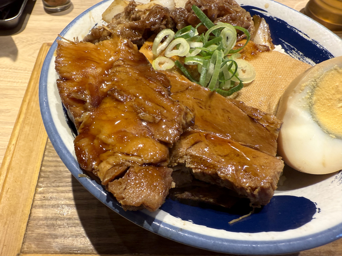 とはいえ『豚角煮と牛焼肉丼』を注文する人は肉が食べたいワケだから、その欲望は十分に満たされるハズ。「豚角煮」と「牛焼肉」の相乗効果こそないものの、パワーで押し切れるくらいの迫力があった。