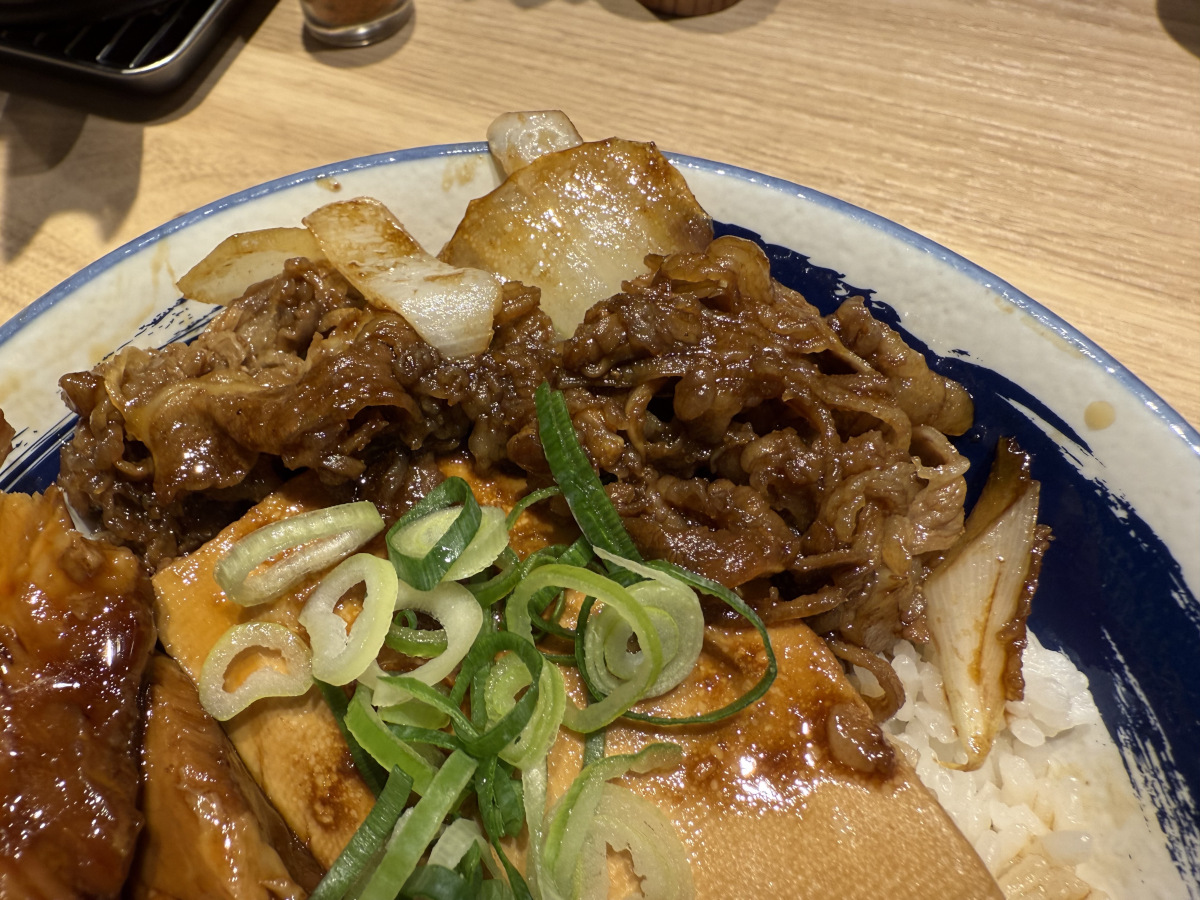 つまり『豚角煮と牛焼肉丼』は「1 + 1」が3以上にはなっていないが「1 + 1」が「「2ィィィイイイイイ!」のような勢いがあるメニューである。いい意味でも悪い意味でも期待を裏切られる可能性は低いハズだ。