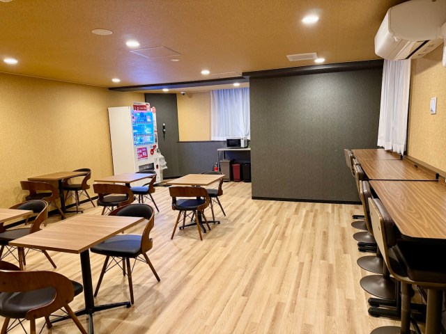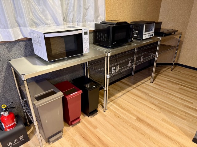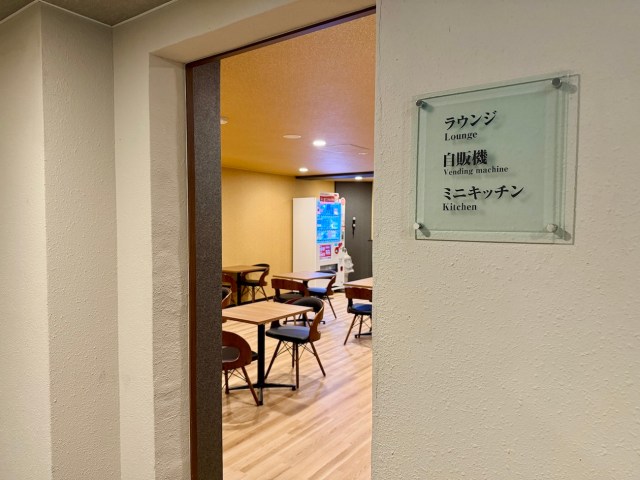 広くて清潔感のあるラウンジスペースには自販機、電子レンジ、トースターなどもあった。