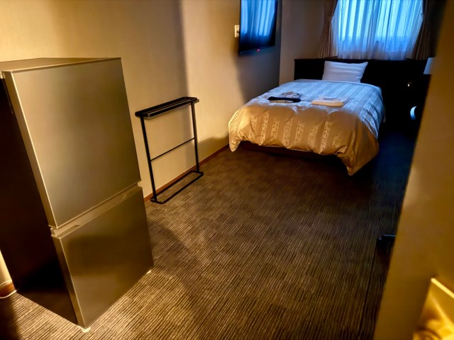 カプセルホテルやゲストハウスより安いはずなのにビジネスホテルよりも客室が広いというバグが起きていた。2ドア冷蔵庫 & シモンズ製のベッド(しかも195cm・120cmのセミダブル)で勝利は確定。