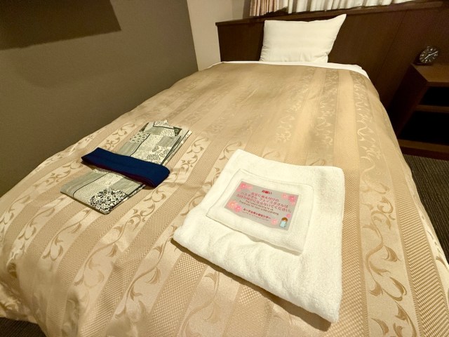 アメニティ類は大小タオル、浴衣、ドライヤーなど、必要最低限のものは揃っていた。なお、歯ブラシ・カミソリはフロントで販売しているようだ。