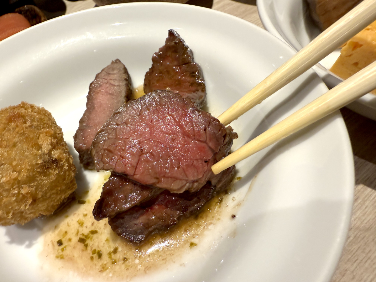 超1流ホテルの朝食ビュッフェと比較して「ちょっと弱いかな?」と感じたのは生野菜とライブキッチンが無いところくらい。ただし朝からステーキがそれら全てを帳消しにするどころか凌駕している。