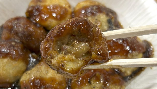 まさか鶏肉が、しかもスパイシーなものが入っているなんて。予想の斜め上過ぎたが、こりゃあウマい!! コショウが入っているためたこ焼きよりもツマミ感があって、ビールにもよく合いそうだ。