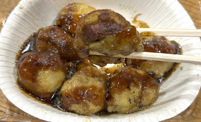 そうは言ってもソースはかかっているし、形は丸いし……これでたこ焼きでないならばナンなのだ! と疑問でいっぱいだったので、食べて確かめてみることにした。