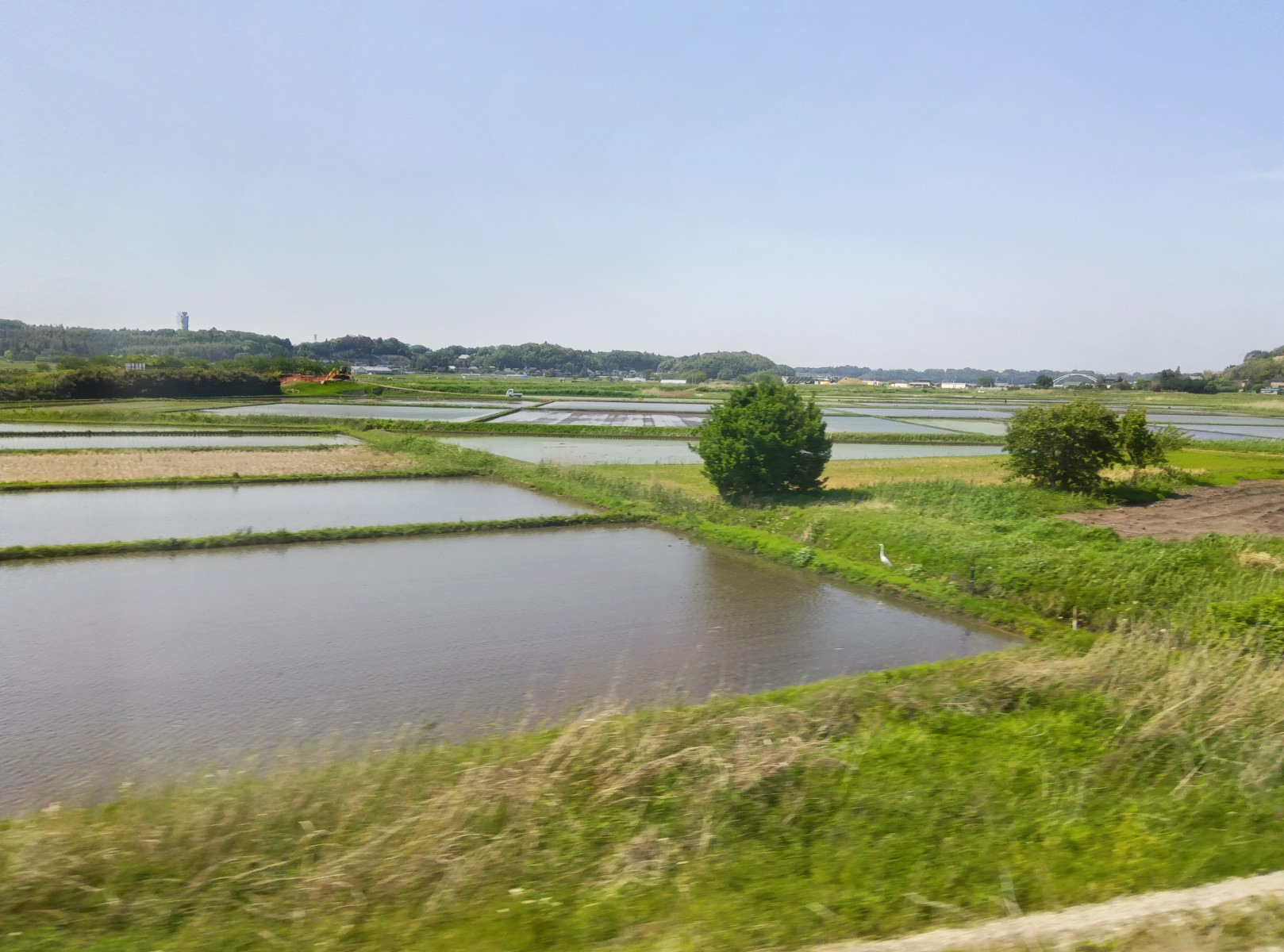 やることがない電車の席。長い距離を移動する特急とか新幹線になると窓の外の景色も楽しみの1つと言えるだろう。街は遠く、晴れた空の下広がる田園地帯の解放感。浄化される~。