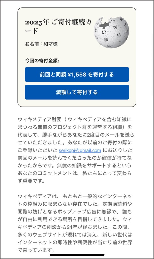 あのWikipediaから「申し上げにくいお願いですが」というタイトルのメールが届いた話 / 寄付したら1年後にこうなった