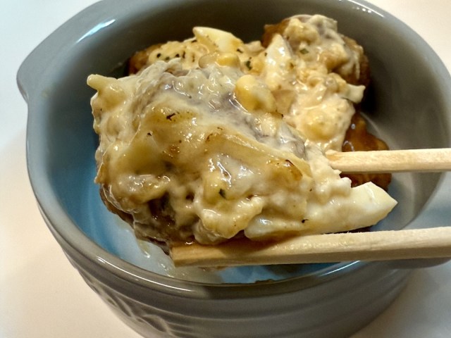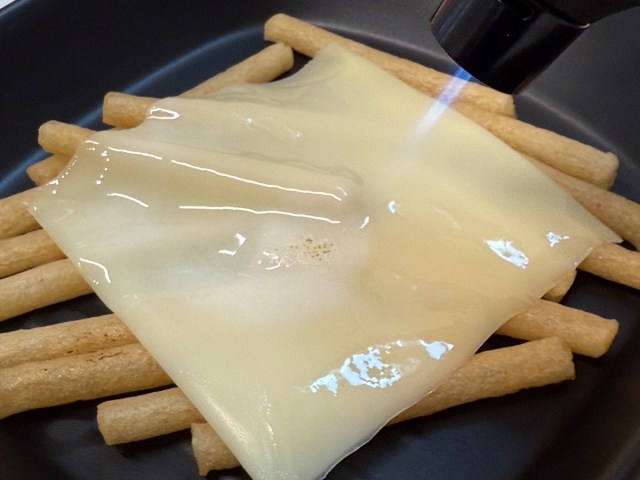 もうひとつ惣菜を試してみよう。もとよりチーズやマヨネーズは炙り料理の鉄板だろう。「冷たいまま食べる」と書いてあるのを盛大に無視して炙ってみたい。