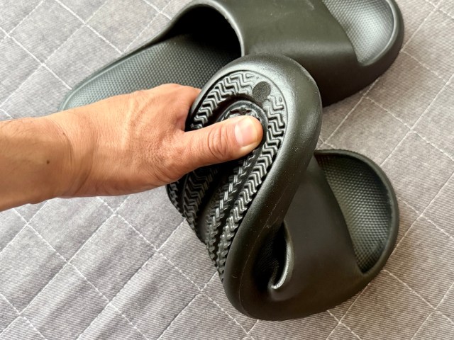 「衝撃値4.13G」が結局どのくらいなのかは不明だが、とにかく「浮いている履き心地」は体験すべきではないだろうか。無重力に憧れたすべての夢追い人を代表してサンダルを履いてみることにした。