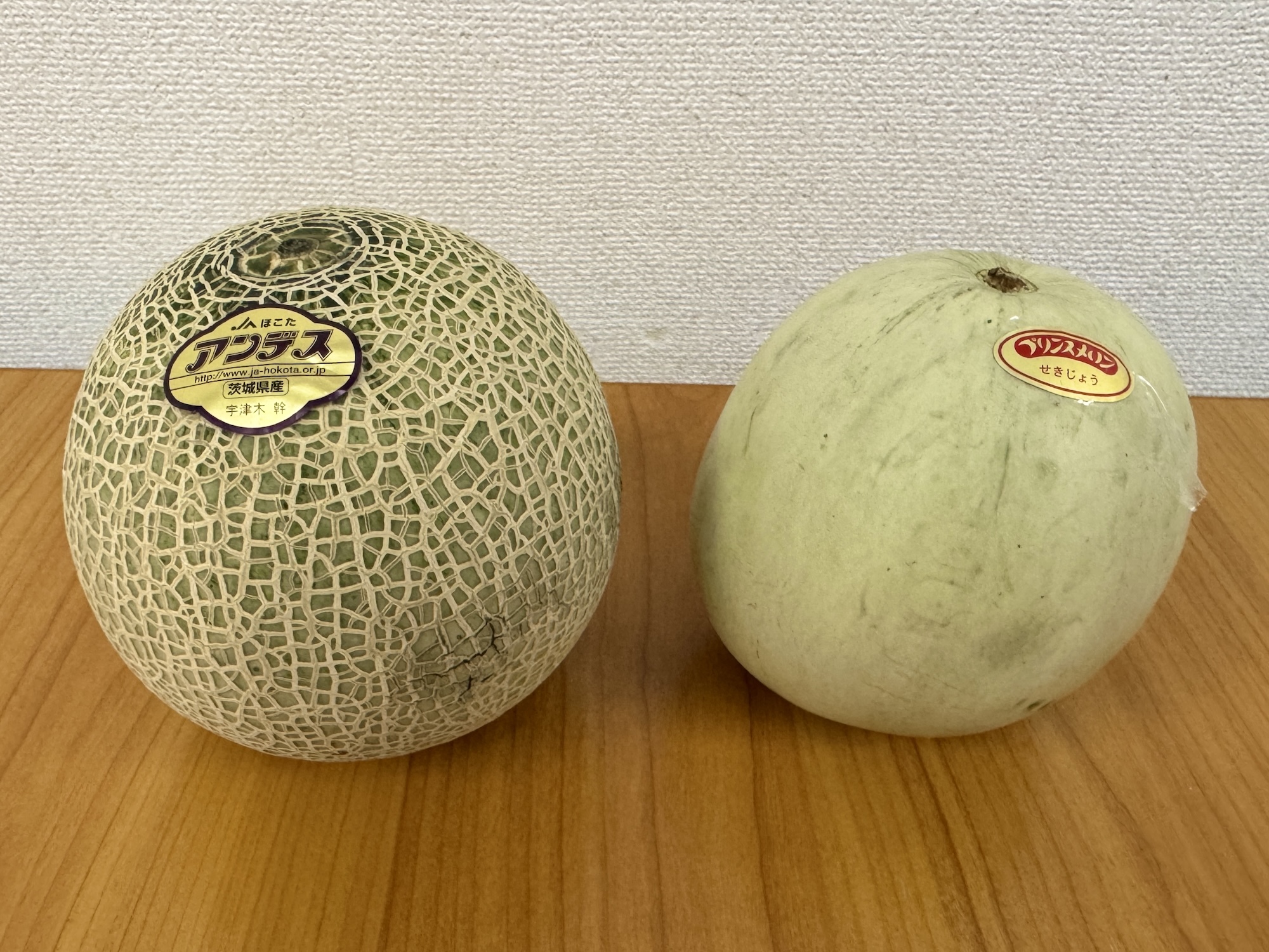 画像左は網目メロンの有名どころ『アンデスメロン』(税込1069円)、右がプリンスメロン(税込432円)である。今回この2つを比較してみたい。