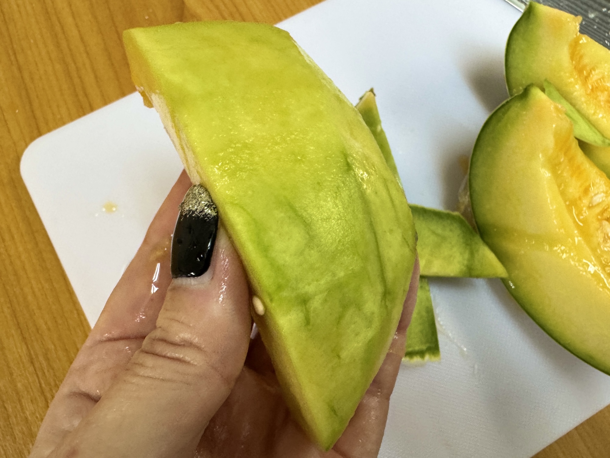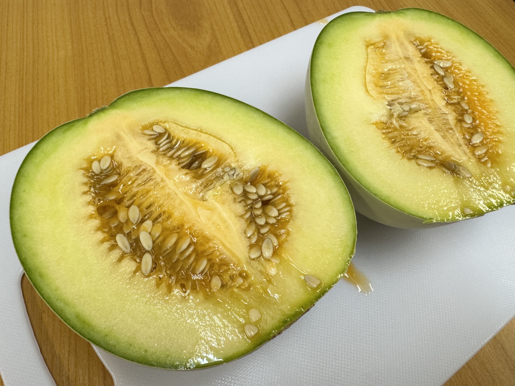 そんなメロン情報弱者のみなさんにお伝えしたいのは、プリンスメロンは網目メロンとかなり趣の異なるメロンであるということ。とくに「メロンがあまり好きじゃない」人はメロン観が変わるので絶対にトライしてみてほしい。慣れるとコレしか食べられなくなるよ!
