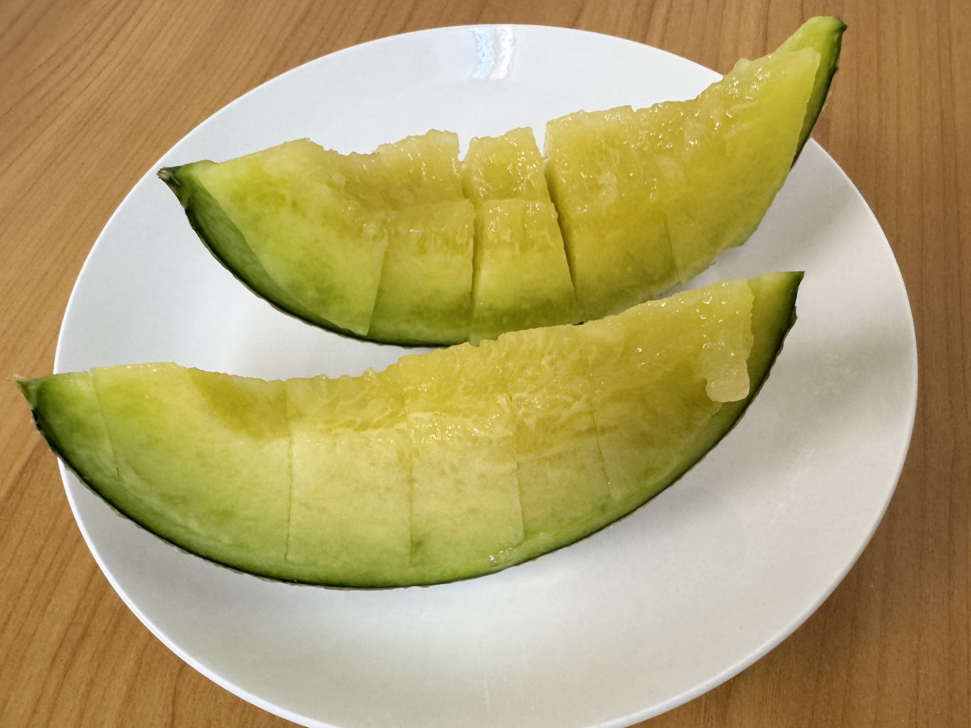 その点、プリンスメロンは馴染みがあるから安心して食べられるな。東京へ来てからは網目のメロンしか食べる機会がなくて、すっかり忘れてたみたいだ。これは新たな発見だったよ、ありがとう。プリンスメロン、うまいな」