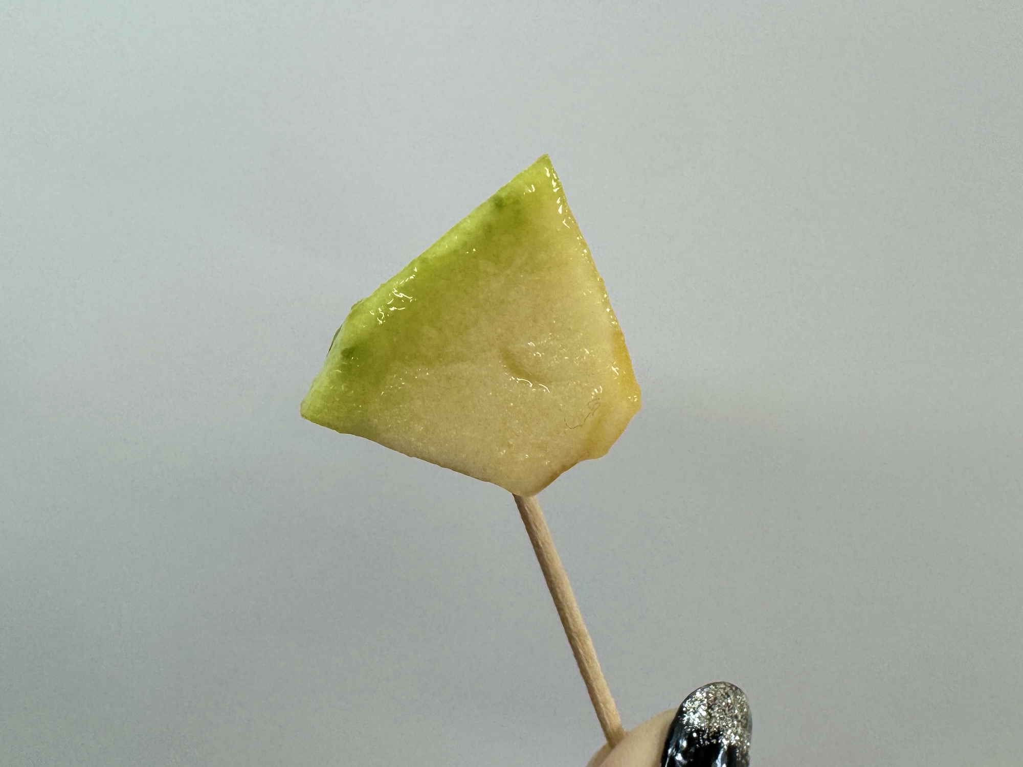 砂子間「プリンスメロンって初めて食べた。シンプルでおいしい。でも……自分はやっぱり、アンデスメロンのほうが好きかな。甘さが全然違う」