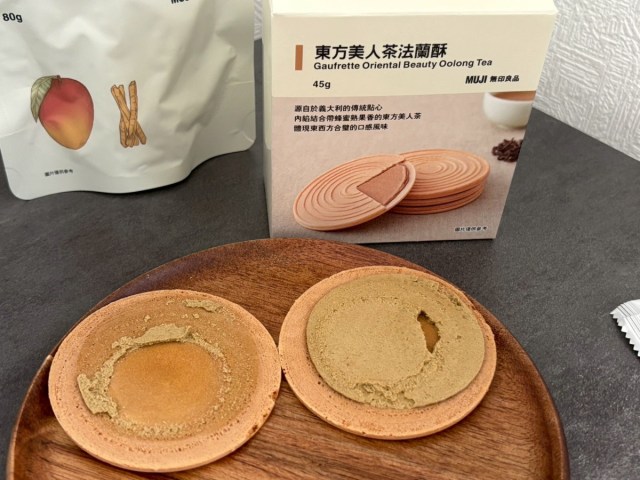 台湾茶の中でも人気の「東方美人茶」を使ったスイーツ。中のクリームに東方美人茶が練りこまれていて、サクサク食感との相性が抜群。