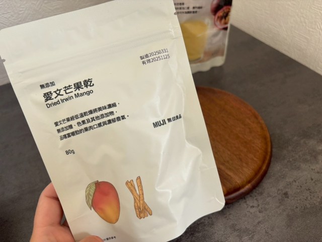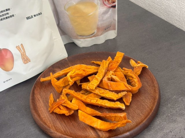 一口にドライマンゴーと言っても、品種や砂糖の有無、形状などさまざまだ。このドライマンゴーは、砂糖不使用タイプだが、それでも十分に甘くて、自然なうまみがぎゅっと詰まっている。これまでいろんなドライマンゴーを食べてきたが、無印のは確実にベスト3入り。