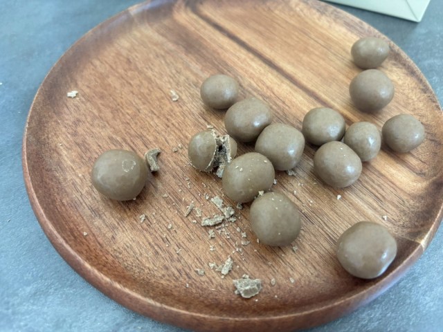 見つけた瞬間、テンションが上がったお菓子。ココア風味のチョコの中に、もちもちのタピオカ風グミが入っている。