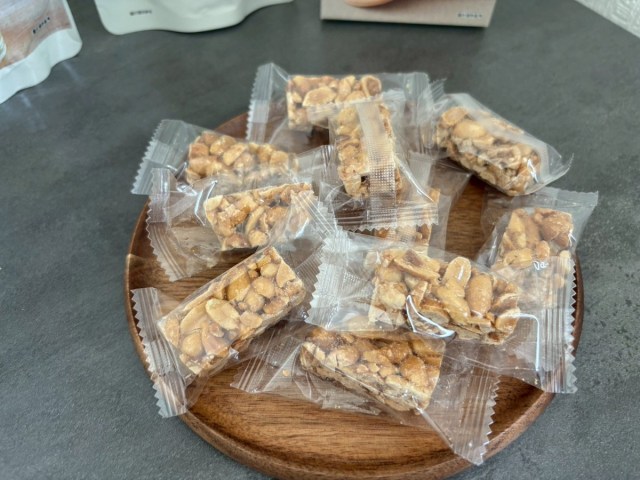 台湾土産の定番・ピーナッツバーも無印で買える。ざくざくのピーナッツが砂糖でコーティングされていて、素朴だけどクセになる味。人工添加物を使っていないのも無印らしいポイント。