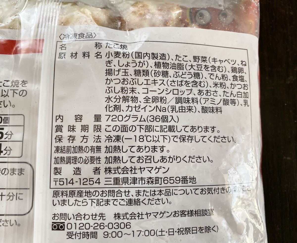 ちなみにヤマゲンのたこ焼きはタコ、キャベツ、ヤマイモなどの厳選した原材料をさらに吟味。冷凍食品ながら本格的な手焼きの味そのままってところが特徴らしい。