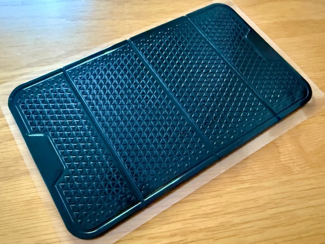 ゲオ(GEO)のカー用品コーナーで山積みされていた「脅威のグリップ力でしっかりホールド!! 超吸着折りたたみすべり止めシート(657円)」を思わず買ってしまった。