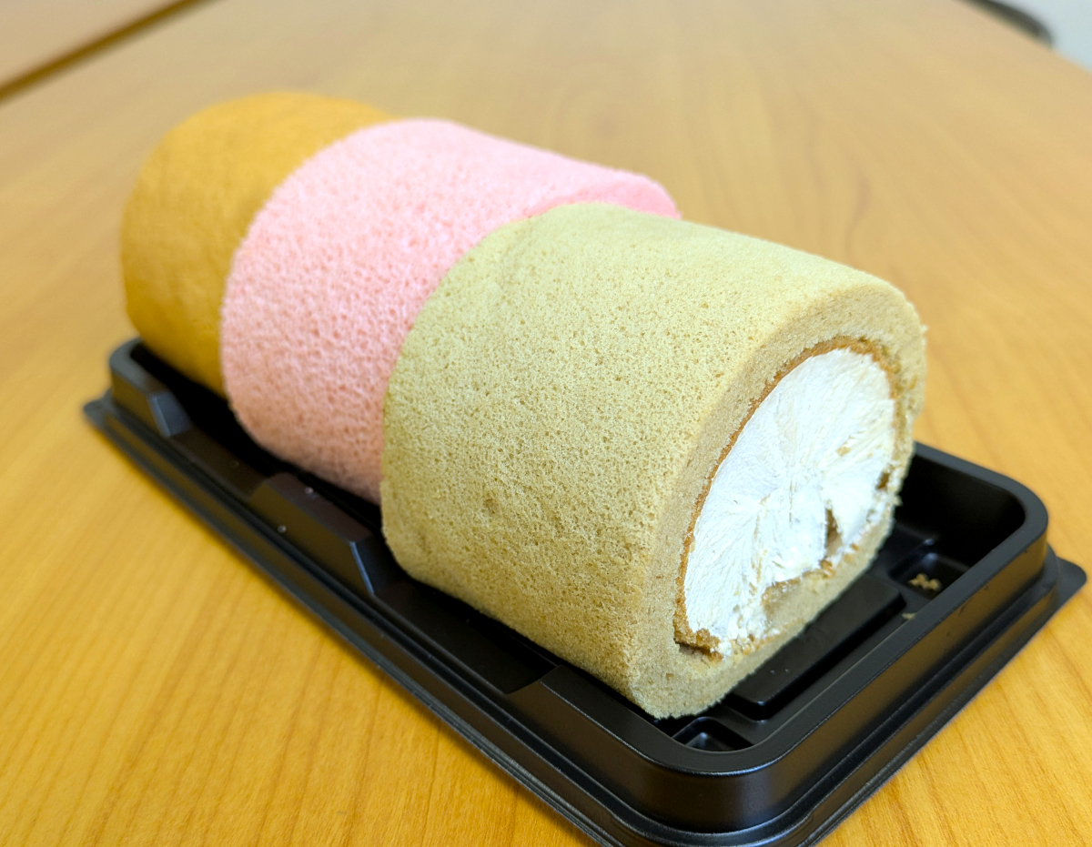 まずは3種のロールケーキがひとつになった、「食べ比べロールケーキ」税込720円です。1つひとつのロールが太いので、友達や家族と取り分けても、1度に全部食べ切れないかも。