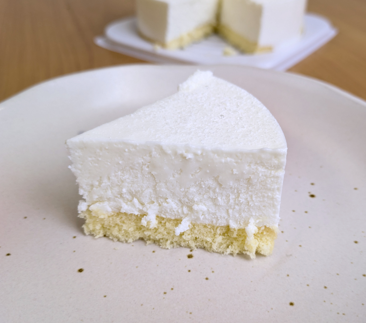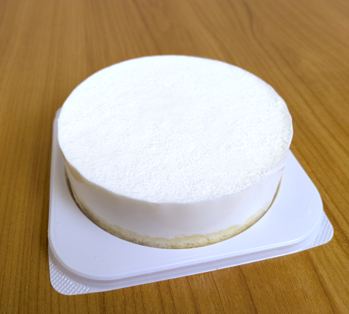 次はホールの「レアチーズ」税込500円。これは3号サイズかな? ロールケーキもレアチーズも冷凍商品で4~5時間冷蔵庫に入れて解凍する。なお、解凍商品の消費期限は当日中とのことだ。