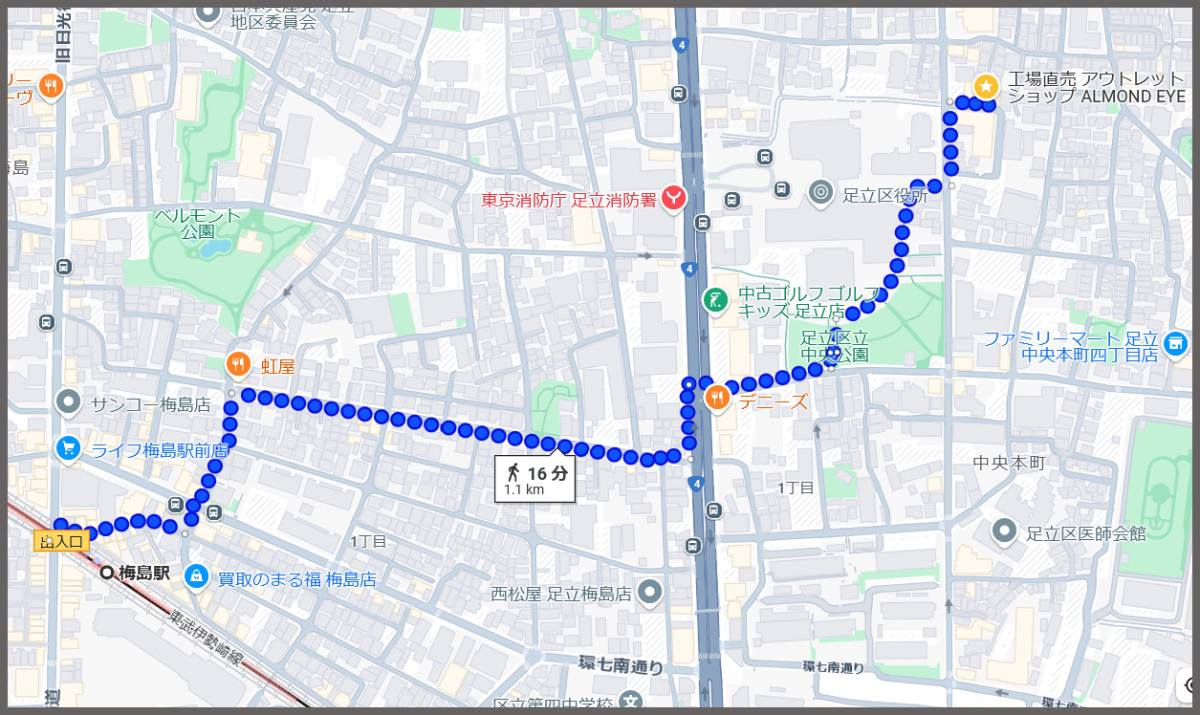 お店は東武スカイツリーラインの梅島駅から徒歩約20分のところにある。