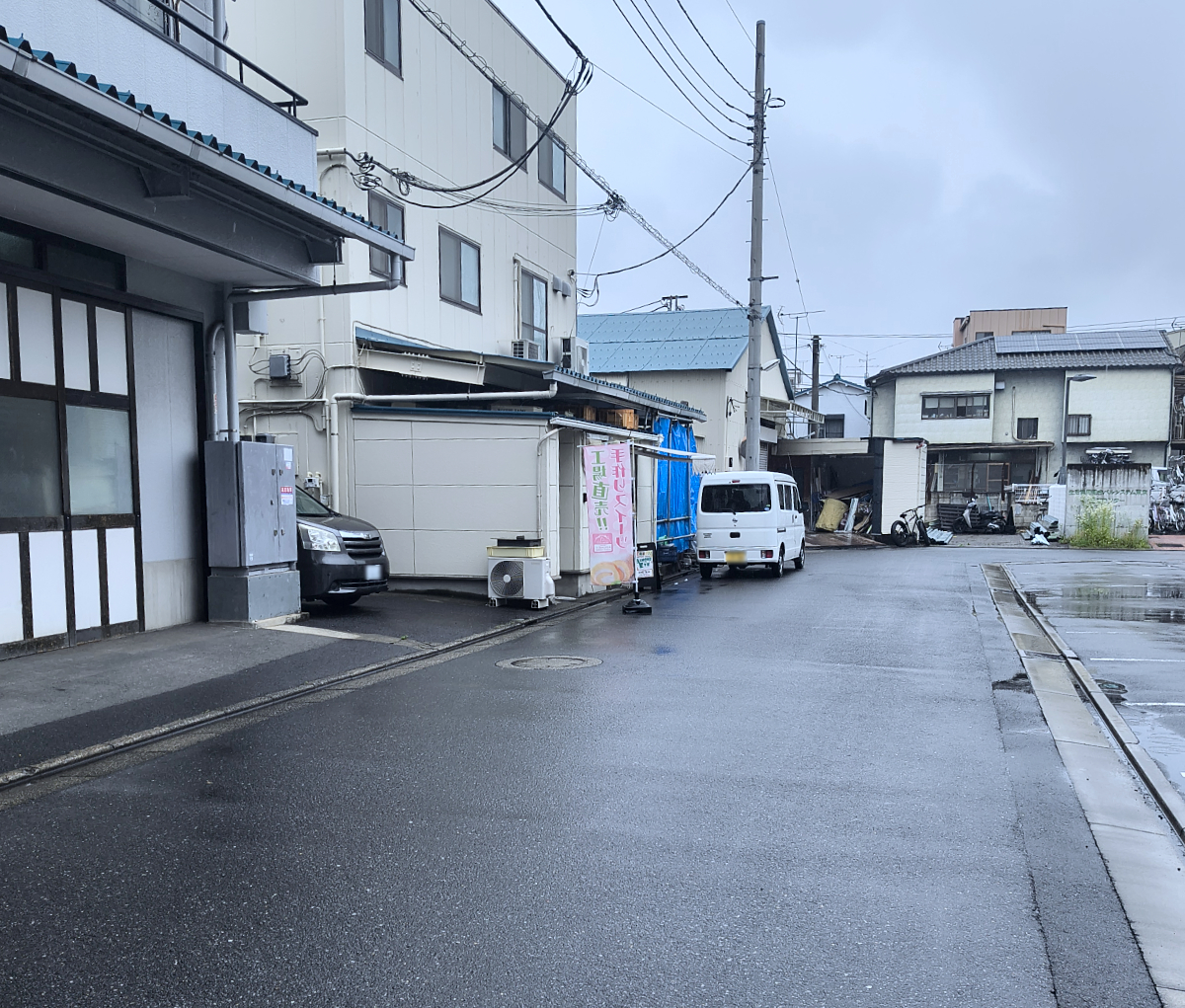 さて、目的のお店は、一般社団法人ルブランサポートの本社(洋菓子工場)の入口にある。あの幟(のぼり)の立っている場所あたりだな。