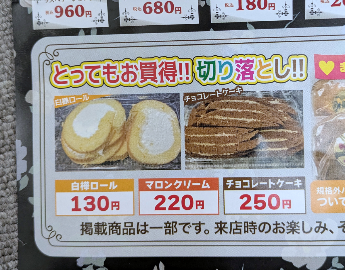 今回、ケーキの切り落としを狙って訪問したのだが、残念ながら並んでいなかった。おそらく人気商品で早くから売り切れるのだろう。チャンスがあれば次の機会に。
