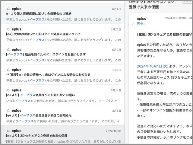 もしイープラスからメールが届いた場合は、必ずブラウザで直接「eplus.co.jp」と入力してアクセスするか、公式アプリを使用してほしい。また、定期的に登録サービスにログインして状況を確認することも重要だ。