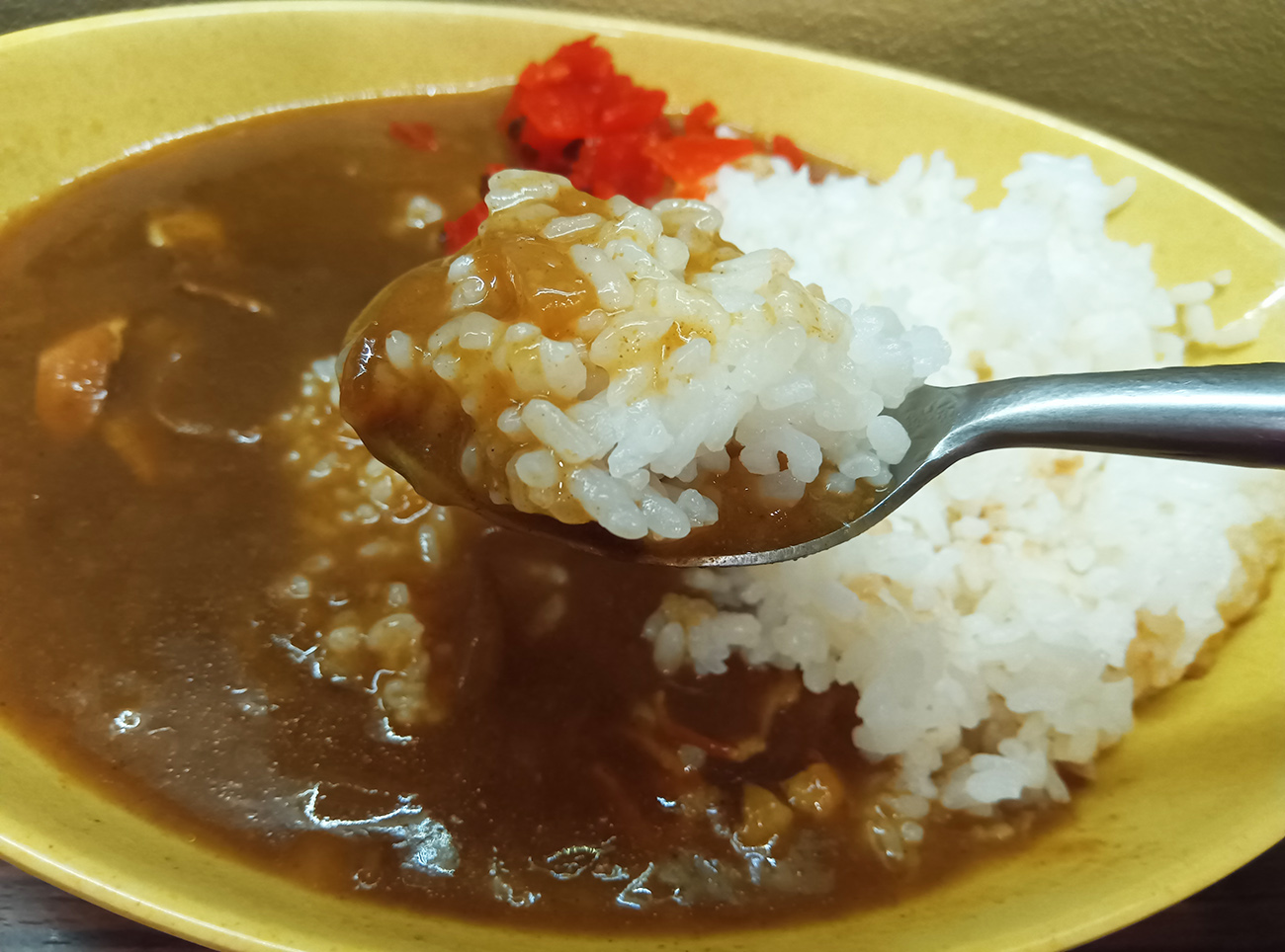 ちなみにカレーライスも単品450円と、このご時世に安めだったので注文したんだけど、ソースがサラッとしている割に味は日本風カレーの濃厚な味が感じられる。カレーライス物価指数が1食429円と言われる2025年6月、このスパイシーかつコクのあるしっかりした味で450円は大分安いと言える。