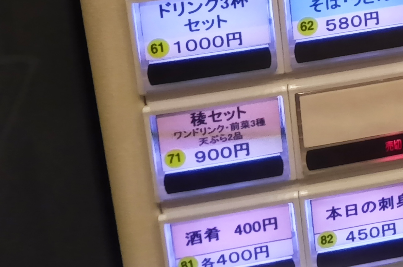 その天ぷらの充実度ゆえか、店内には昼から天ぷらをあてに呑んでいる人もいる。私は酒をほぼ飲まないけれど、メニューを見ると昼呑みのお客さんの気持ちはわからんでもない。なんなら隅っこにある「綾セット(900円)」はワンドリンク・前菜3種・天ぷら2品と、酒呑みほいほいなオーラを発している。綾瀬の風を感じるぜ。