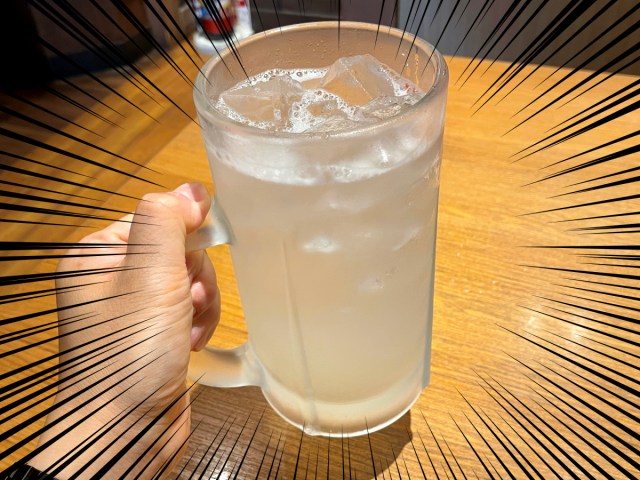 というワケで早々におかわりしようと思うが、ここで目に入ったのが『筋トレジョッキ 安べゑレモンサワー』(税込658円)だ。“映え” とも “エモ” とも無縁な、オシャレ度ゼロのネーミング……よし、これしかない! 頼んだれ!!