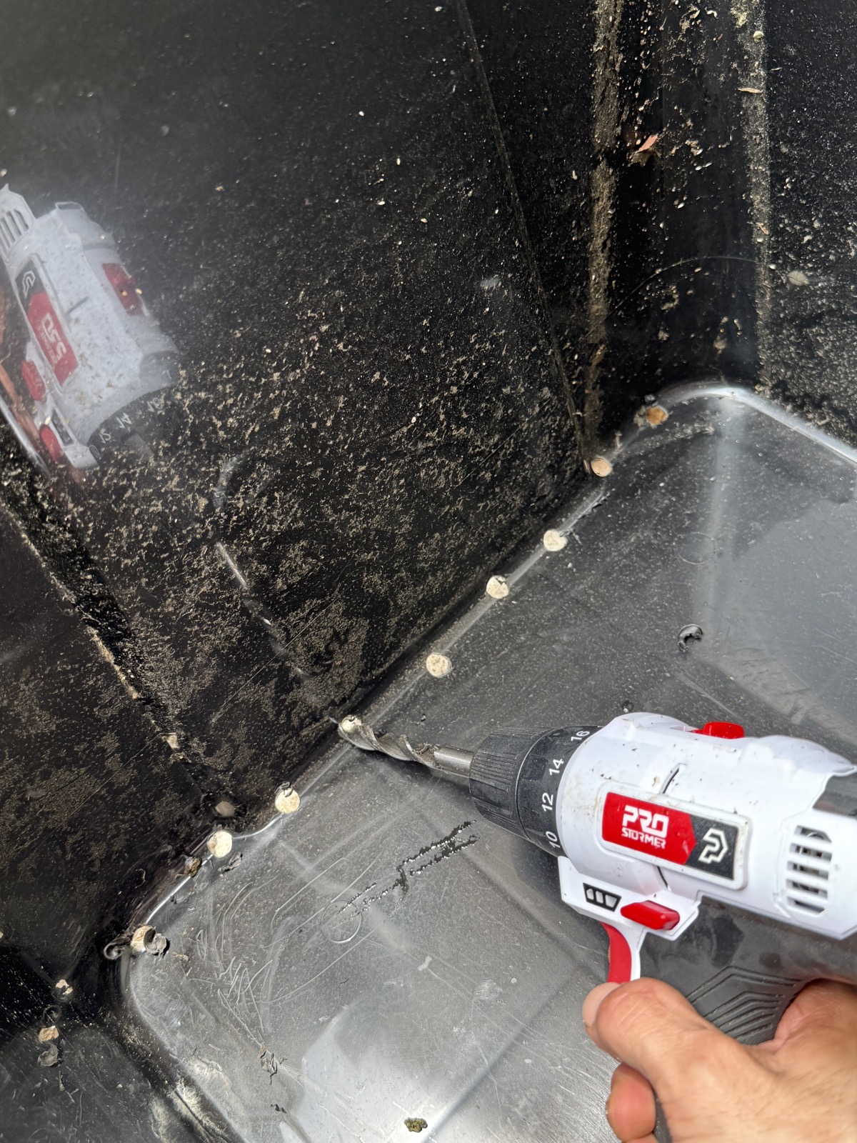 この場所、傾斜がついているので、さきほどドリルで空けた穴からチロチロと優しく排水される。