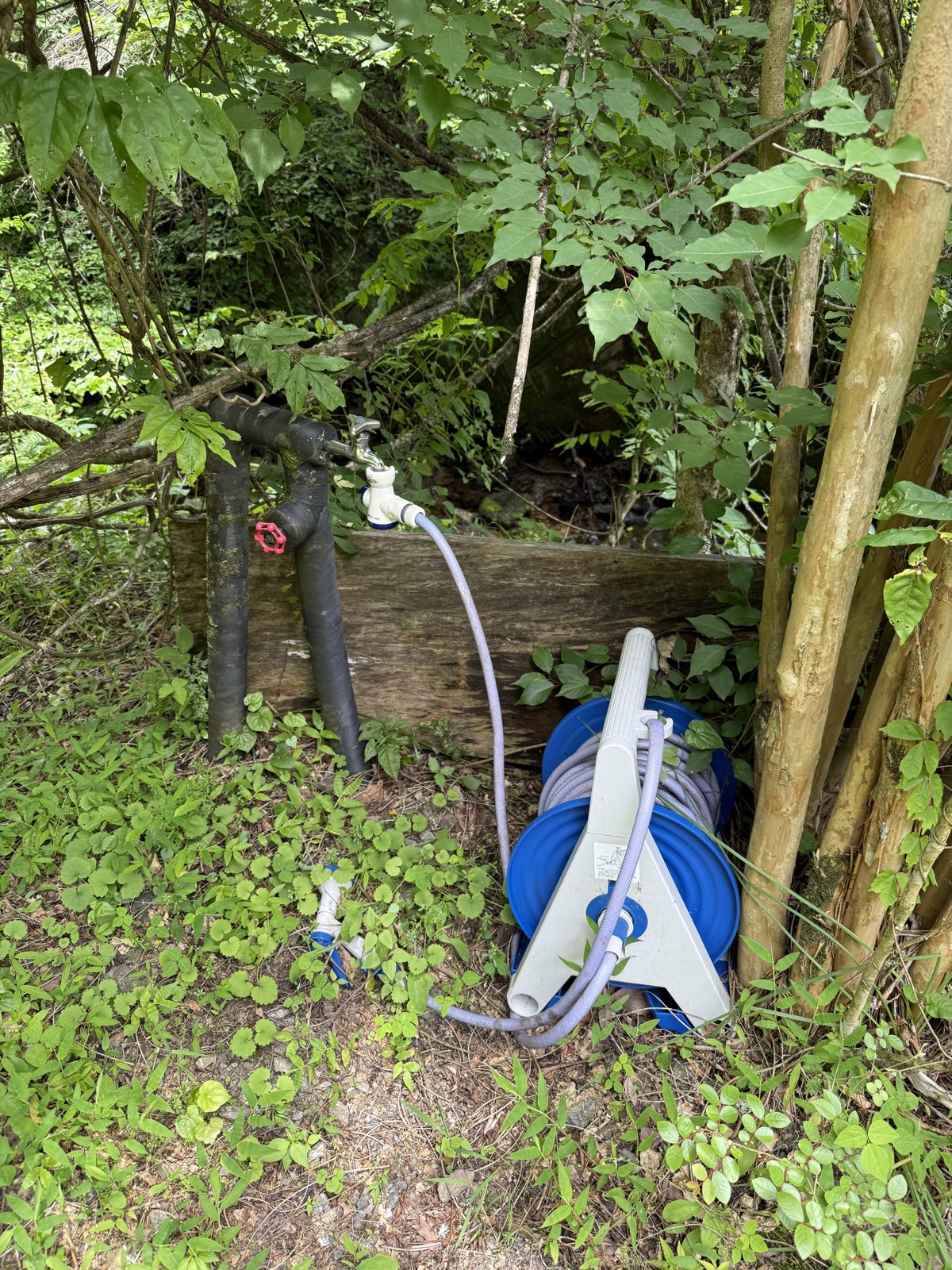 無料で出てくる水道(湧き水)は謎に枯れたけど、水中ポンプを駆使しての「電気式の水道(無料)」を作ることにより水が復活! しかし、“そのままホースから出る” 的なシステムなため、まだイマイチ実用的ではなかった。