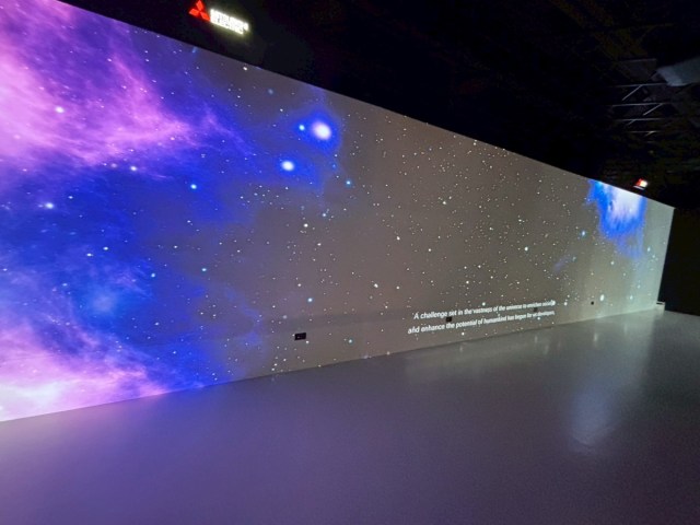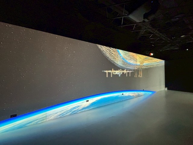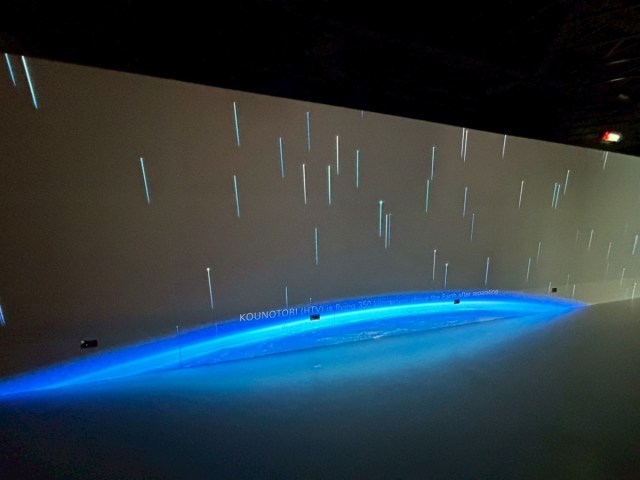 床に映る映像が自分の動きに反応して、ちょっとだけ宇宙空間を旅してるみたいな感覚。日本初の宇宙ステーション補給機「こうのとり」のドッキングシーンには、理屈抜きでちょっと感動する。