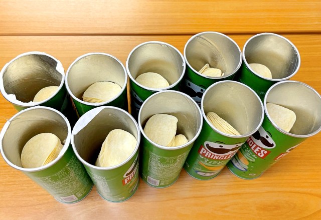 そこで今回は、手元にある数十本のプリングルズの中からランダムで10本を選出。すべて開封して、中身の状態を確かめてみることにした。