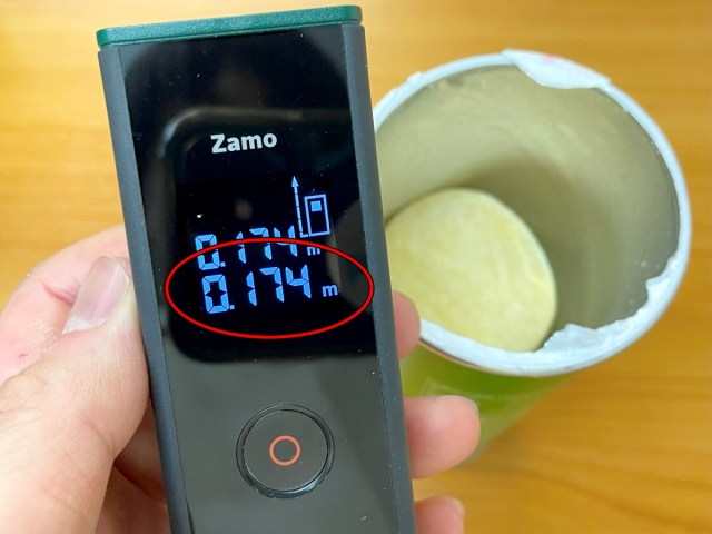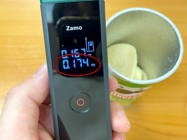 こんなふうに、筒の最上部に合わせた状態でポテチにレーザーを当てれば、フタからポテチまでの正確な距離を測定することができるというわけ。
