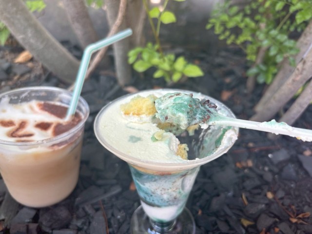 せっかくなので、「50倍スースー!チョコミントパフェ」(税込1350円)を注文。「カプチーノ」(税込800円)もつけてみる。