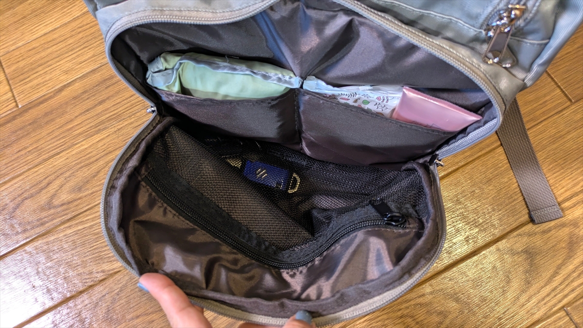 容量があり、小物をバラつかせずキレイに収納できたワークマンのマザーズリュック。